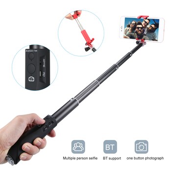Generic-Selfie Stick Aluminum Alloy BT Phone Selfie Stick Free Retractable Rod