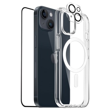 Moxedo 3 in 1 Protection Pack, Tempered Glass Screen Protector, Magnetic Clear Case and Camera Lens Protector Compatible For iPhone 14 Plus