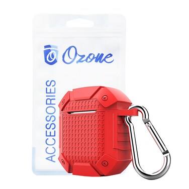 Ozone - Rugged Series Case for AirPods Heavy Duty Armor Defender Shockproof Cover with Keychain For AirPod 2 / 1 - Red
