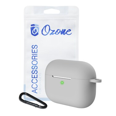 Ozone - Silicone AirPod Pro Case with Hook Keychain Ring Protective Cover for AirPod 3 / Airpod Pro [Front LED Visible] - Grey