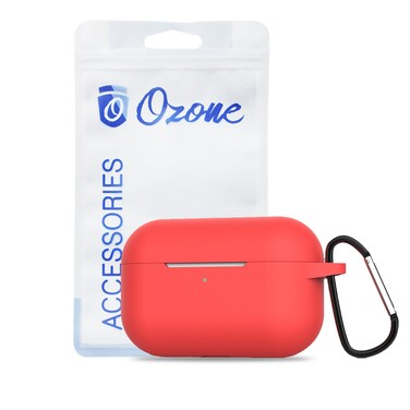 Ozone - Silicone AirPod Pro Case with Hook Keychain Ring Protective Cover for AirPod 3 / Airpod Pro [Front LED Visible] - Red
