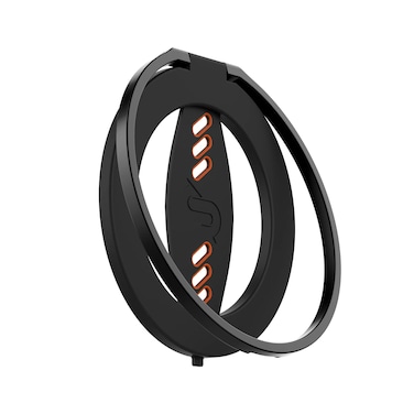 Remson Mag-X Phone Grip Finger Strap Magnetic Phone Kickstand with Silicone Strap Compatible for iPhone 14, 13 Pro/Max/Plus (Black/Orange)