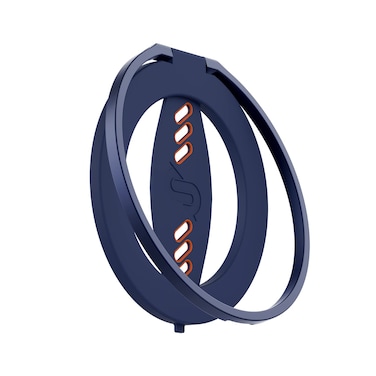 Remson Mag-X Phone Grip Finger Strap Magnetic Phone Kickstand with Silicone Strap Compatible for iPhone 14, 13 Pro/Max/Plus (Blue/Orange)