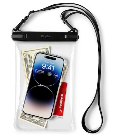 Want to capture the best parts of your underwater adventure but don't want to get your smartphone wet? Ringke's got you covered! The Ringke Frameless Waterproof Pouch is the best waterproof bag on the market with an impressive IP rating of IPX8! IPX8 rating means this pouch can be fully and continuously submerged in water without any moisture leaking into it. All you need to do is stick your phone into the bag and bolt the super secure one-touch lock at the top of the pouch to seal it up for guaranteed waterproofing. The body of the bag is made of a high-clarity TPU material that's known for its versatility and durability. The clear TPU allows you to take beautiful pictures and videos to truly capture the moment without any blurry or color-altering filters. The bag is also big enough that you can store more than just your phone. Use this pouch like a regular minibag by holding your keys, sunglasses, or other essentials so you can enjoy your water fun without having to worry about your things. Further simplify life by using the included size-adjustable strap! The strap goes from a length of 44cm to 84cm, so you can wear the pouch in any way you want. Hang it around your neck, slide it over your shoulder, or fit it around your body. There's no wrong way to enjoy the comfort of hands-free convenience. The Frameless Waterproof Pouch is made of a soft, supple material that's easy to hold while you use your phone in the bag. You can easily locate and press any buttons through the TPU and use the touchscreen without having to take your phone out of the pouch. The Frameless design is easy to wear and the minimal design makes it the perfect accessory for any style and occasion.