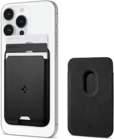Spigen Valentinus MagFit Magnetic Wallet Card Holder, 3 Cards, Designed For MagSafe Compatible, With iPhone 14, iPhone 13, And iPhone 12 Models, Black