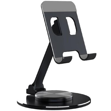 Xonic Mobile Phone Stand For Desktop With 360° Rotating Base, Adjustable and Foldable Aluminum Mobile Phone Holder, Compatible For All 4.0"-11" Phones And Tablets Black