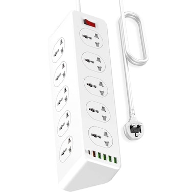 10 Way Power Extension Cord Surge Protector Strip Heavy Duty Universal Electrical Socket 5x USB-A 1x USB-C PD 30W
