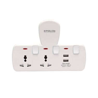 b"Having multiple plug sockets around you is not possible. Epsilon offers you a versatile and highly functional 2-way universal socket with 2-way USB ports, which is a convenient power solution for all your electrical needs. It allows you to connect multiple electrical devices to a single outlet, making it ideal for travel or use in small spaces where only one power outlet is available