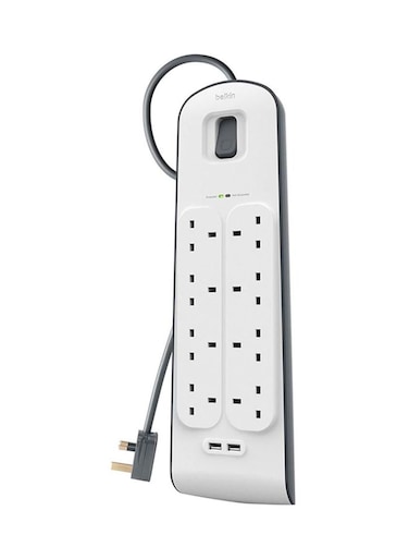 - <li>Model Number : BSV804AF2M<li>Colour Name : multicolour<li>Connection : Wired</br></br><li>Provides premium power protection for your laptop, television, cable box and other home theater equipment<li>Protects and charges tablets, smartphones or other devices at fast speeds<li>The Belkin Surge Protection Strip is made with high-quality construction and enhanced circuitry to offer premium power protection for your high-end devices and data<li>The surge protection strip also keeps your devices safe from sudden voltage fluctuations or low-level spikes and drops that can damage or even destroy electronics over time<li>Charge your portable devices quickly while protecting them from damage and data loss thanks to two integrated USB ports