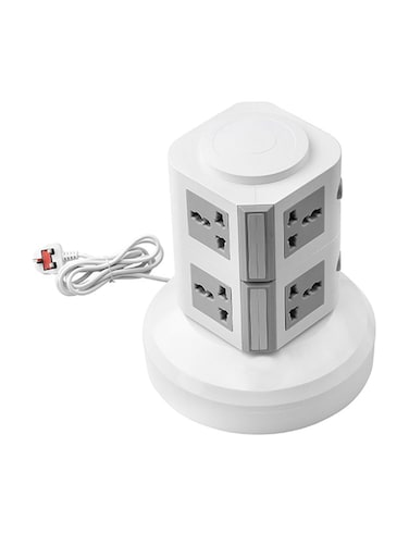 Generic - 2-Layer Multi Pin Vertical Power Extension Socket Grey/White