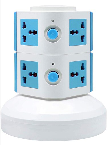 Generic 2 Layers Extension Outlet With 2 USB Ports, Universal Vertical Multi Socket, 2.8M Cord and UK-Plug Multi Charging Station (Blue)