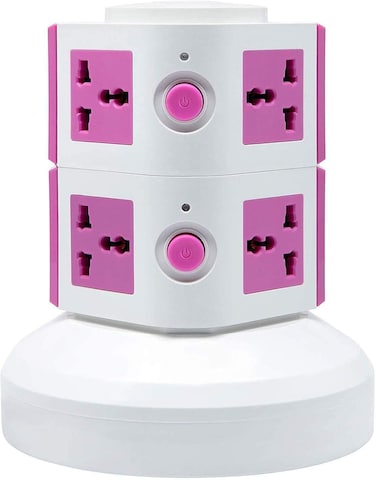 <li></b>2 Layers Extension Outlet With 2 USB Ports, Universal Vertical Multi Socket, 2.8M Cord and UK-Plug Multi Charging Station (Pink)