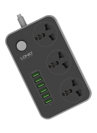 LDNIO 3 AC Socket USB Charger Black/Grey