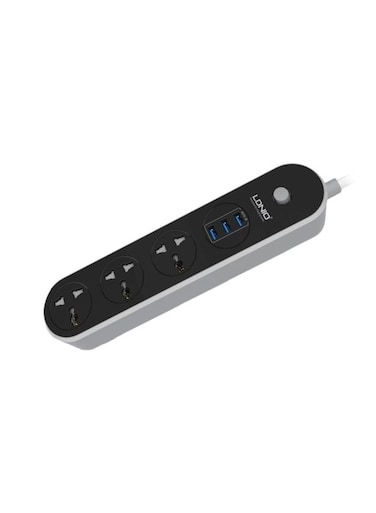 LDNIO 3 Power Socket With 3 USB Ports Power Strip Black/White 282.3x58.4x32.8millimeter