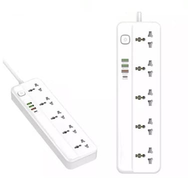 The vertical power extension lead adapter has 5 universal outlets, which means you can connect up to five devices at once. You won't have to worry about unplugging any of your devices to charge another, as there is enough space for all your devices to accommodate even large adapters. Use an on/off switch conveniently placed on the plug extension while you’re away.