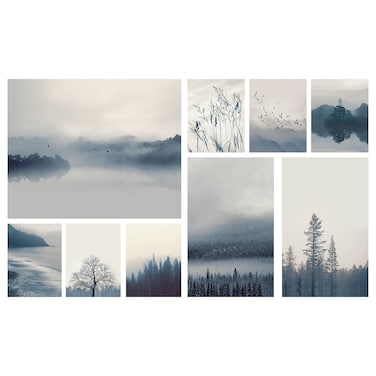 Picture Set Of 9 Blue Landscape 179X112 Cm