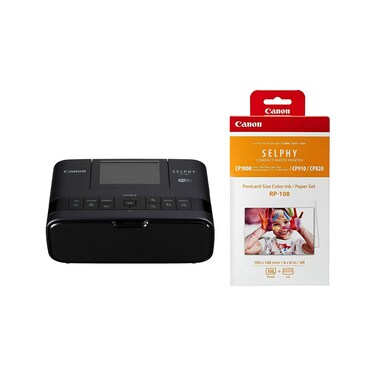 Canon Selphy CP1300 Photo Printer Black and Photo Paper Pack of 108