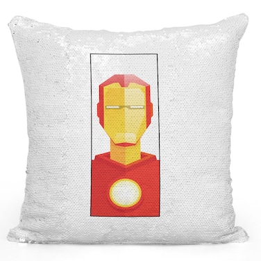 Loud Universe - Sequin Pillow Magic Mermaid Throw Pillow Iron Man uperhero Pillow - Durable White 16 x 16 inch Square Modern Livingroom Decorative Pillow