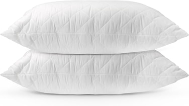 Hotel Linen Klub Pack of 2 Quilted Pillow Queen (50 x75cm) - Outer Cover: 144TC Cotton Blend Fabric, Filling:650grams Soft Fiber, Diamond Quilt Pattern