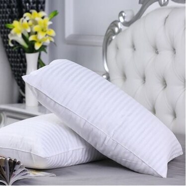 Rahalife Pack Of 2 Soft Stripe Hotel Pillow Microfibre White 75x50 centimeter
