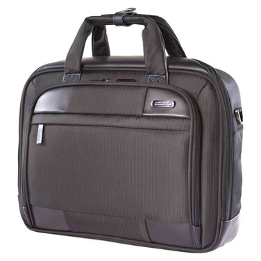The American Tourister Merit Polyester Laptop Briefcase in S Black is a stylish and practical accessory for professionals on the go.