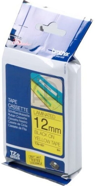 Brother Tze-631 Labelling Tape Cassette, 12 mm (W) X 8 M (L), Laminated, Genuine Supplies - Black On Yellow