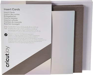 Product Description: Quick, personalised greeting cards with big impact are at your fingertips with Insert Cards for your Cricut Joy cutting machine. The ingenious glue-free design allows for two-tone, depth-filled cards without mess or hassle. Cut intricate and meaningful words and images into the face of the card to let the beautiful insert colour show through. These A2-size cards include white envelopes and come in a bounty of colours to please every card recipient on your list! For use with Cricut Joy. Requires Cricut Joy Card Mat (sold separately).