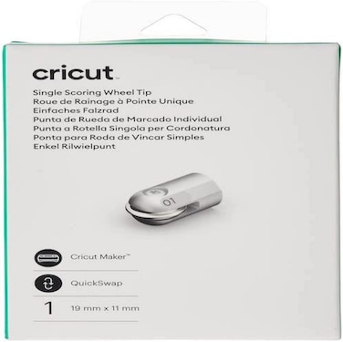 Easily snap the Single Scoring Wheel onto the QuickSwap Housing (sold separately) to break creative barriers and get extra-deep score lines. From flawlessly finished tags, cards, and gift boxes to jaw-dropping wearable art, 3D home decor, structures, and more, you’ll bring pro-level precision to every possible crease-and-fold project. Get crisp creases in one pass. Make perfect, effortless folds. Rejoice in that flawless finish. With up to 10X more pressure than the Scoring Stylus, the patented wheel design takes on basic materials with ease. For use with Cricut Maker machines only. Expand your collection of Cricut Maker tools with a variety of QuickSwap tips. Just swap out Single or Double Scoring Wheel with any other QuickSwap tip, including Engraving Tip, Debossing Tip, Perforation Blade, and Wavy Blade – with more on the way.
