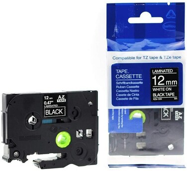 - <p>Compatible Tz Tze Laminated Label Tape For P Touch Label Printers<p>12Mm White Letters On Black Label 8 Meter Length<p>Compatible With Tze335<p>10 X 7 X 1 Cm, 100 Grams