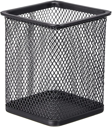 - <p>Mesh Line Wire Metal Pen Holder<p>Dice<p>Dimensions: 80 x 80 x 100 mm<p>Colour: black<p>Product Dimensions: <p>7.9 x 7.9 x 9.5 cm, 58 Grams