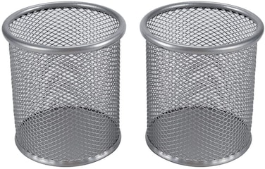 - <p>Color:SilverPackage includ 2 pcs pencil holders Mesh collection desk accessories have a simple and elegant industrial look and sturdy metal construction Holder is tall enough to hold tall desk supplies like scissors and rulers Ideal for home and office use Material : Mesh Metal, Size : 3.5(D) x 3.8(H) inch