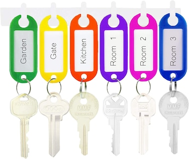Generic Plastic Key Tags, 2X0.8 Inch, Customizable Removable Card Label For Identification, Multifunctional Organizer, With Rounded Edge And Metal Ring, 50 Pieces