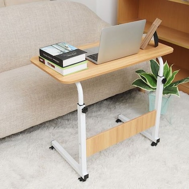 Height Adjustable Computer Table Portable Solid Wood Laptop Desk Wood color brwon