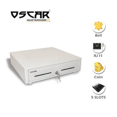 OSCAR Point Of Sale POS Cash Drawer OCH 410 Automatic Open With Bell RJ11 Printer Interface Status Mirco Switch Enabled White Color