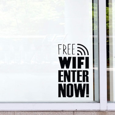- This "FREE Wi-Fi" sign wall art decal is motivational and the perfect touch for both indoor and outdoor decoration. It is a vinyl sticker that is easy to put onto almost any smooth surface and really brings a room together adding the perfect amount of decoration. This vinyl decal quote is perfect for cafes, restaurants, and shops. Our motivational quotes don't just brighten up the room, but brighten up the day. Using top of the line vinyl across all of our production allows us to be the leaders in quality and design.The easiest surfaces for Vinyl to stick on isWindowsWallsMirrorsDorm RoomsCarsLockersFlat and Smooth SurfacesTables and GlassCabinetsAll vinyl packages come with easy to follow instructions further explaining just how simple it is to apply vinyl on and off your surface of choice. Prior to applying the vinyl, be sure the surface is clean and oil free for best results. This vinyl is waterproof and is not permanent so it is not only easy to use but, easy to remove as well. In general, vinyl lettering is one of the latest and greatest trends in home decoration. Because our products are high quality, they give the illusion of painted wall art without the mess, cost, or time. Our motivational quote vinyl wall decals are the perfect addition to your apartment, home office or dorm room. Our positive life quote vinyl stickers will personalize and enhance the interior decoration of any room within minutes. What are you waiting for? Let's get crafty!</br></br><li>✓ Our high quality sticker vinyl "FREE Wi-Fi" decal design comes in 16 inches by 10 inches. The pictures are for display and inspiration only. All of our vinyl wall decals are manufactured with premium industrial grade Lutema self-adhesive vinyls.<li>✓ Our removable peel and stick wall art decal quotes, sayings and designs are the perfect way to make a statement without having to redecorate an entire room. Our vinyl sticker decals are the perfect way to make a statement in any bedroom, living room, kitchen, hallway, nursery or children's bedroom, as well as dorm rooms, business offices, work spaces, gyms and restaurants.<li>✓ Enjoy a motivational saying home decor vinyl wall decal quote in moments. Our decals can be applied to most clean smooth surfaces including interior walls, doors, windows, mirrors, cupboards, stairs, glass, laptops, luggage, car windshields and bumpers, thermos, coffee mugs and school binders.<li>✓ This peel-off vinyl decal is easy to remove with no residue left behind. Our peel and stick decal stickers include easy step by step instructions on how to effortlessly apply the vinyl. These self-adhesive, non-toxic vinyl stickers are waterproof, durable and will last for years without peeling, wrinkling or fading.<li>✓ The perfect addition to any indoor or outdoor room for both decoration and modern wall decal designs. Our inspiring quotes don't just brighten up the room, but brighten up the day. In general, vinyl lettering is one of the latest and greatest trends in home decoration. Because our products are high quality, they give the illusion of painted wall art without the mess, cost, or time. What are you waiting for? Let's get crafty!
