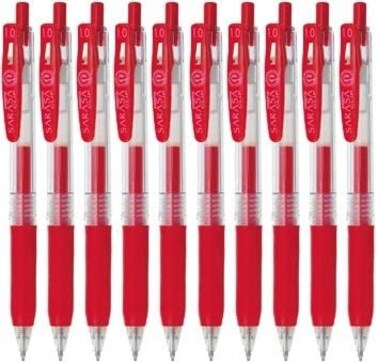 Zebra Sarasa Clip 1.0 Retractable Gel Ink Pen Rubber Grip 1.0mm Red Ink Value Set of 10