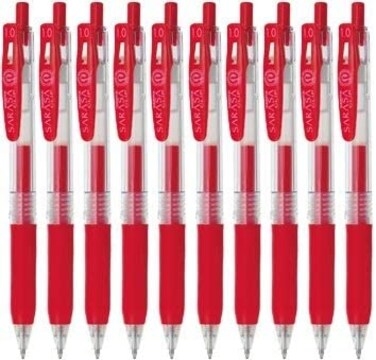 Zebra Sarasa Clip 1.0 Retractable Gel Ink Pen Rubber Grip 1.0mm Red Ink Value Set of 10