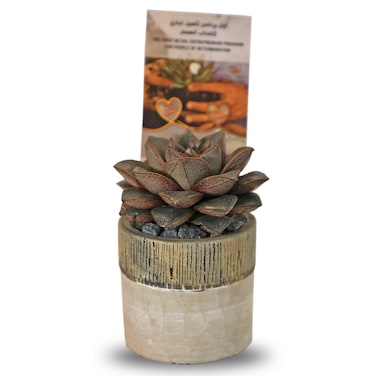 Enable Echeveria in Black Line Design Round Cement Pot 12X15cm