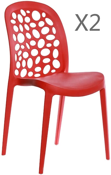 LANNY Set of 2 back hole design stackable chair A312 Injection processing Fixed leg plastic leisure chair outdoor/indoor outside/inside Patio/Garden chair Water/sun proof Dining chair for households, restaurants, cafeterias, events, and other-RED