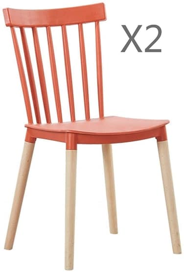 LANNY Set of 2 plastic windsor chair 53# modern desgin with solid wood legs leisure dining chair for indoor/inside living room office restaurant and events-RED