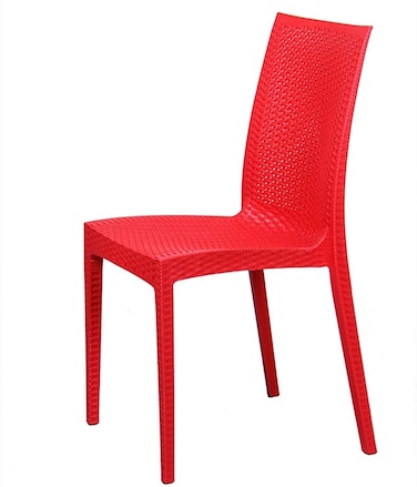 LANNY Set of 4 Plastic Armless Chair 1707red Rattan Desgin Dining Chair-good for Garden Patio Kitchen