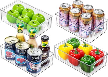 Refrigerator Organizer Bins, Clear Stackable Pantry Food Storage Bins for Kitchen Organization (4 Pcs)