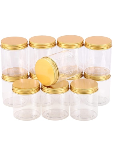 • 12 Pieces (450ml) Spice Storage Empty Bottle Refillable Clear Jar/Food Container/Plastic Pet Jars/Cansister Plastic Bottle with Metal Gold Lids