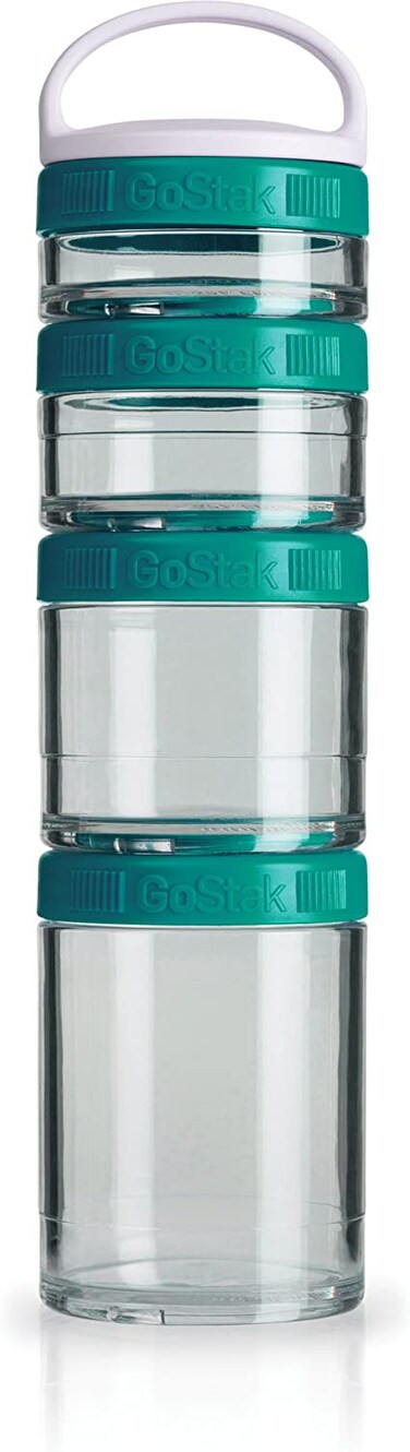 Blender Bottle Gostak Food Storage Containers For Protein Powder, Healthy Snacks, And Portion Control, 4-Piece Starter Pak, Teal