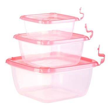 Plastic Food Container Set Pink/Clear 3 PCS