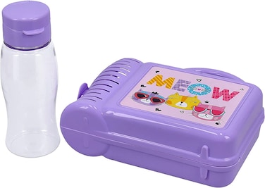 Royalford Lunch Box With Water Bottle For Kids- RF10824 Plastic Lunch Box Perfect For Schools With Durable And Leak-Proof Construction 100% Food-Grade, Non-Toxic Compact And Portable Design Purple