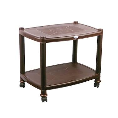 Esqube Delta Plastic Glossy Trolley Table (Brown)