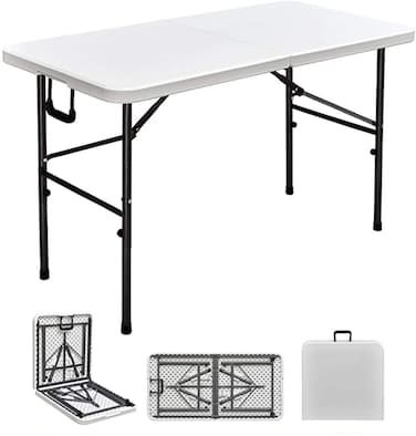 LANNY Folding Plastic Table Adjustable 2 Heights-74cm&50cm for Kitchen Restaurant Garden Patio Outside/Outdoor Inside/Indoor Party Picnic and Events - Plain White Top Size 122 * 60cm