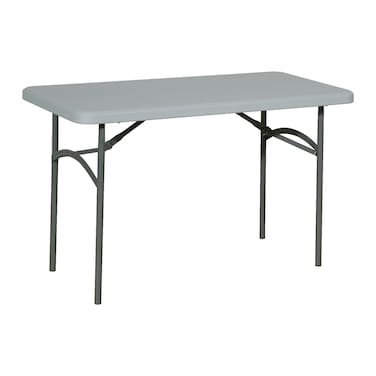 - Compact folding table, constructed of smooth roll-up aluminium slat top and sturdy steel support