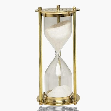 This exquisite hourglass is not only functional but also acts as a conversation starter, making it the perfect addition to your home, office, study, desk, or bookshelves. It adds an element of sophistication to any space and is a fun way to measure time while cooking, playing games, working out, or taking short breaks at the office. The fine, white sand inside has a beautiful yet subtle sparkle that is sure to catch your eye. The hourglass is made of pure brass and glass, crafted with a complex process using simple tools and fine workmanship. The simplicity of its form makes it suitable for mix and match style of decoration at home.